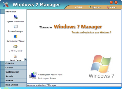 Windows 7 Manager is an all-in-one utility for Microsoft Windows 7